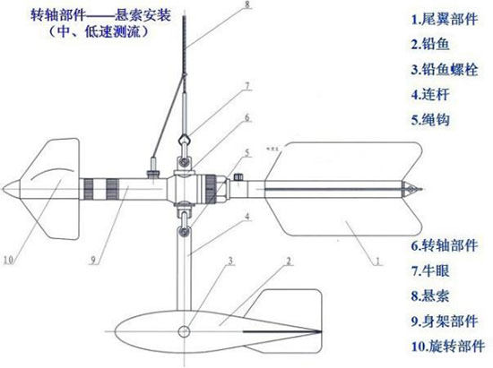用 途:測定江河、湖泊、渠道、水庫等過水斷面中預定測點的水流平均速度.